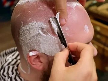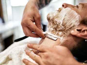 Old-fashioned hot lather, and hot towel straight razor shave.