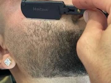 HAIRCUT & BEARD TIM, LINE UP WITH RAZOR AND HOT TOWEL